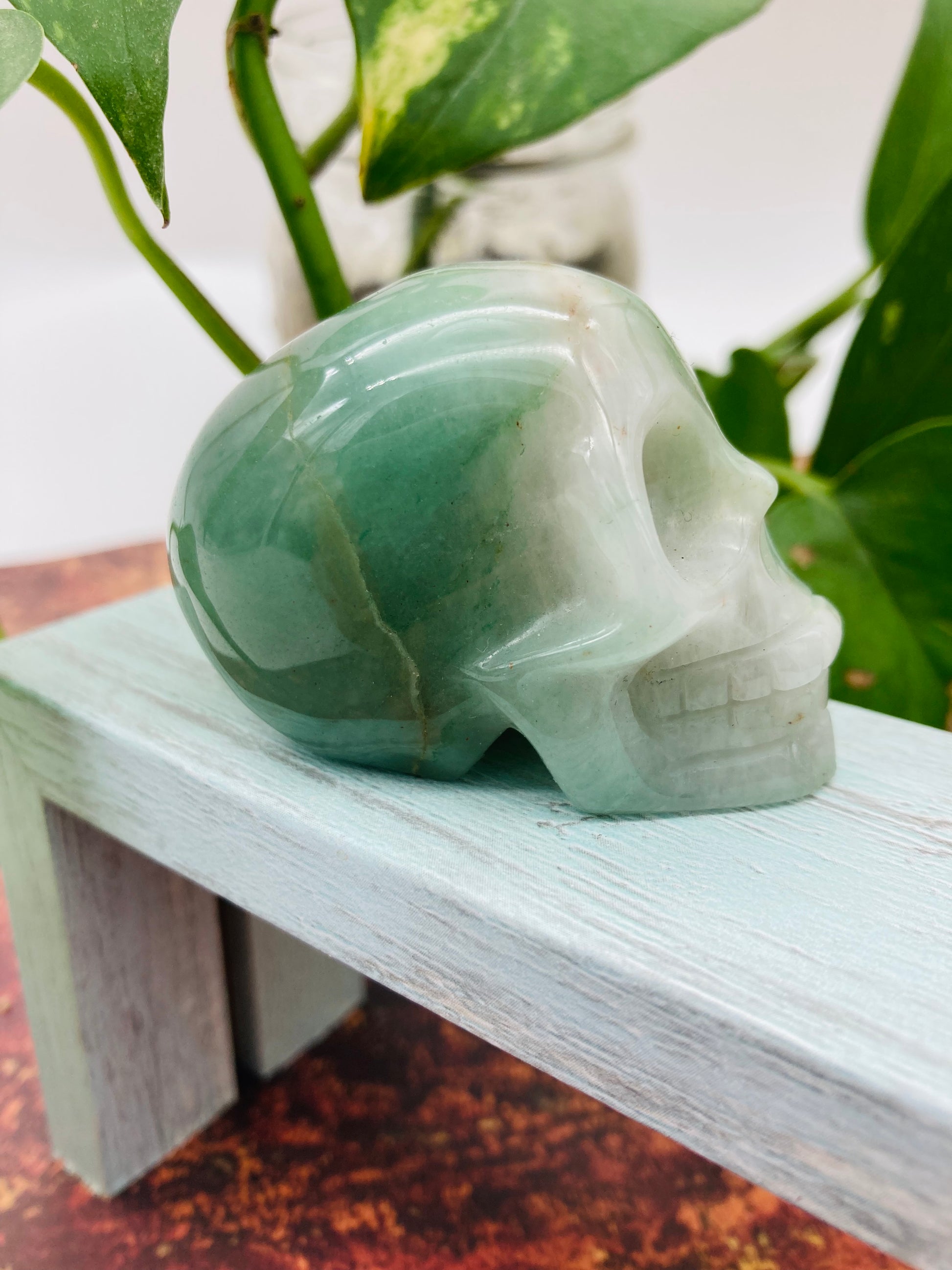 Gorgeous mixture of Quartz and Green Aventurine skull carving ! 2inches