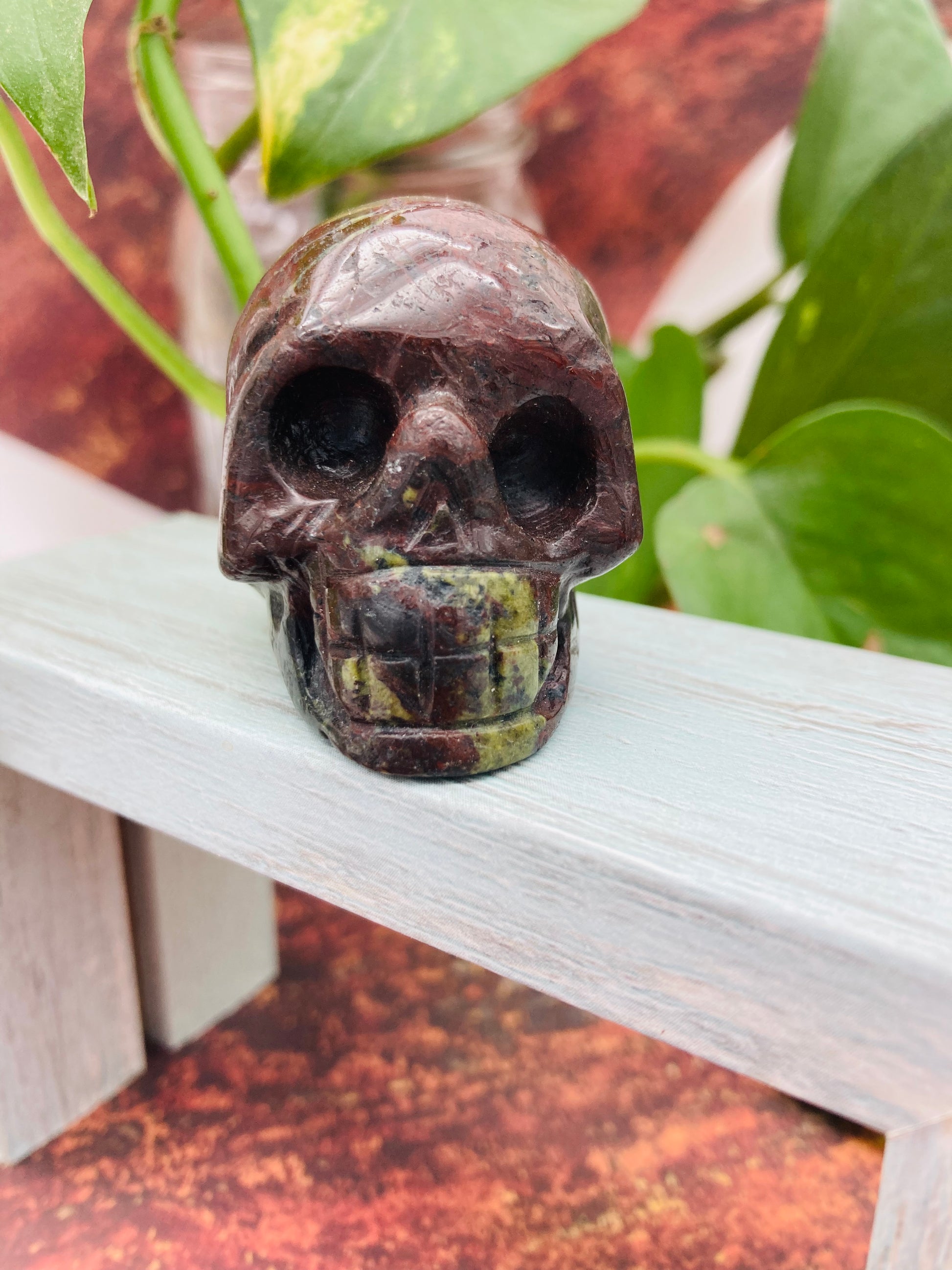 Beautiful 2” inch Unakite Skull carving .